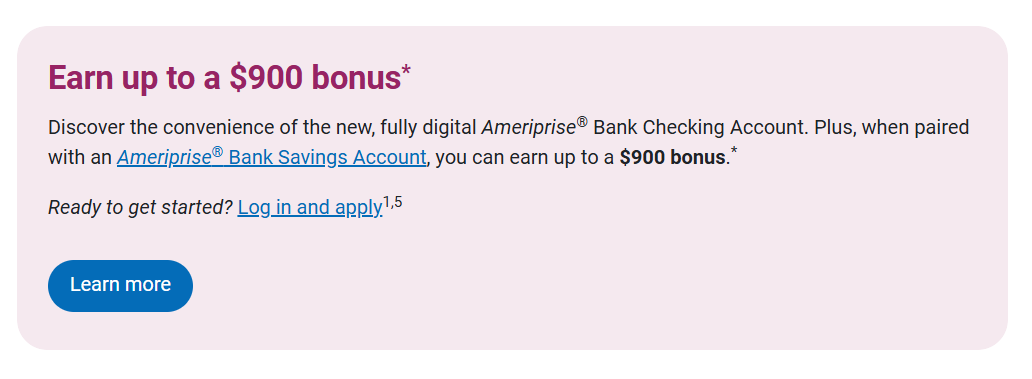 (Existing Customers) Ameriprise Up to $900 Checking/Savings Bonus