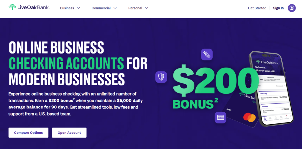- Live Oak Bank offers a $200 bonus when you open a personal checking account and meet the following requirements: