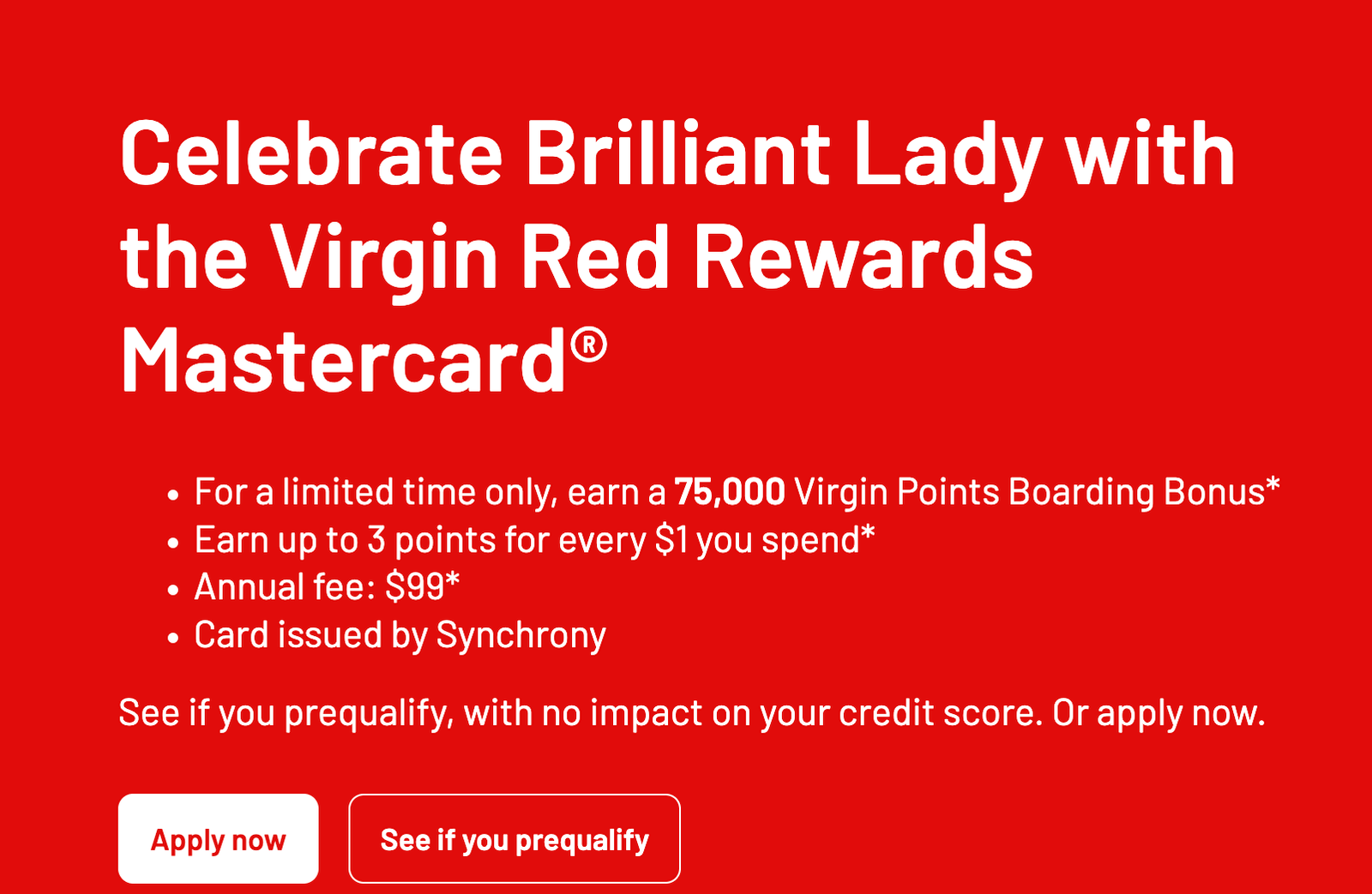 - Valid September 3 – September 5, 2025: Synchrony Virgin Red offers 75,000 points after $4,000 in spending within the first three months.